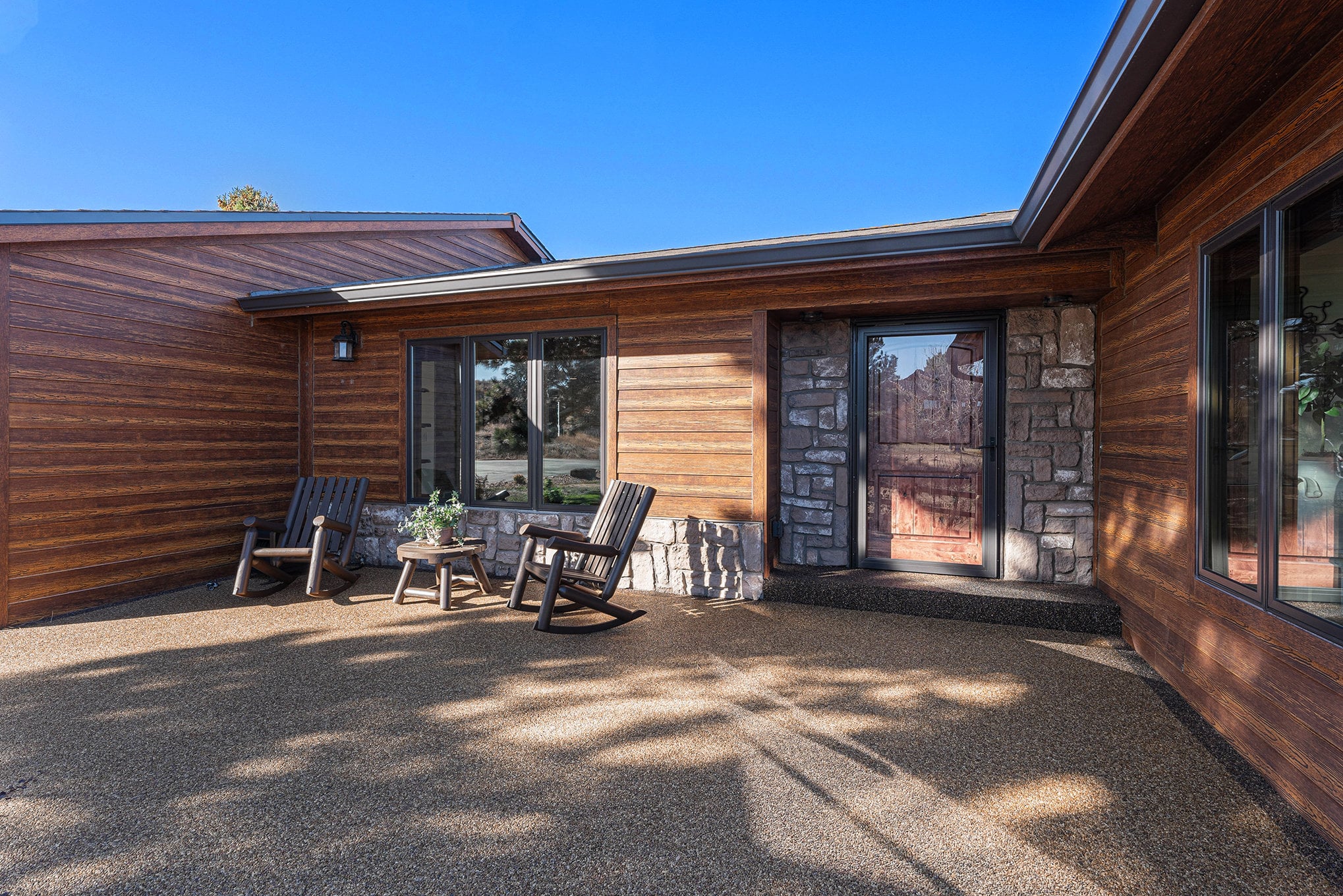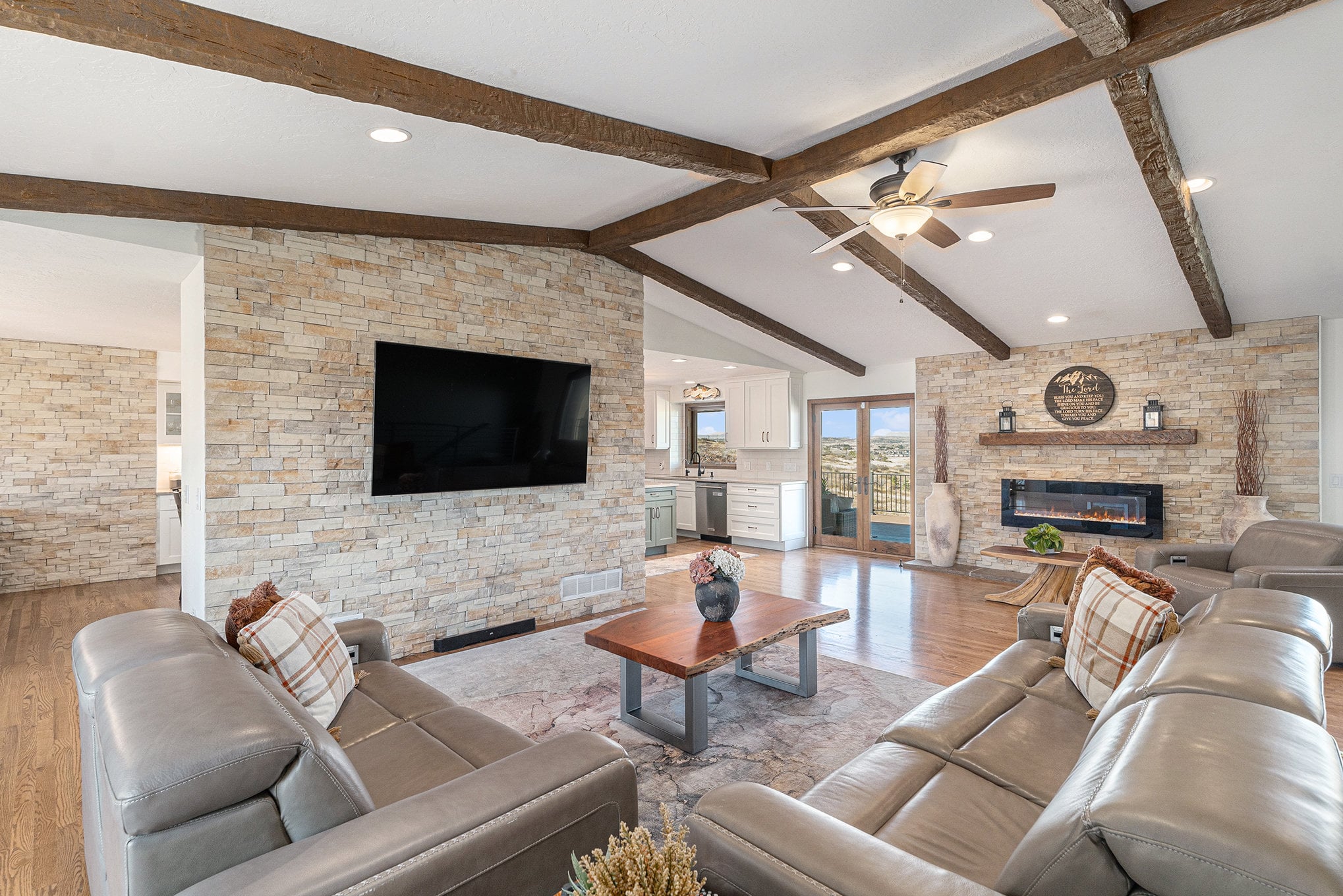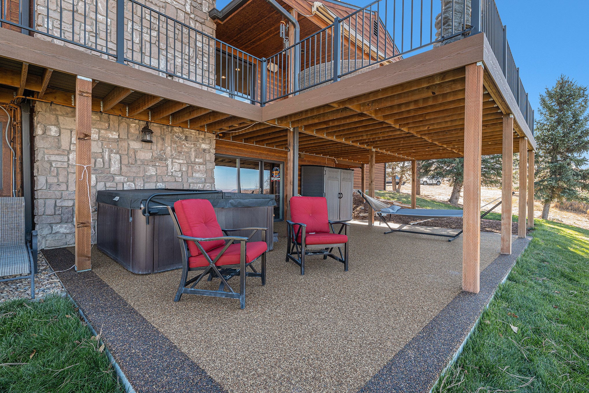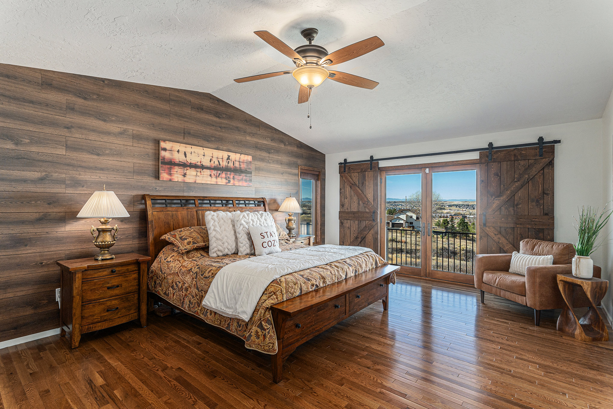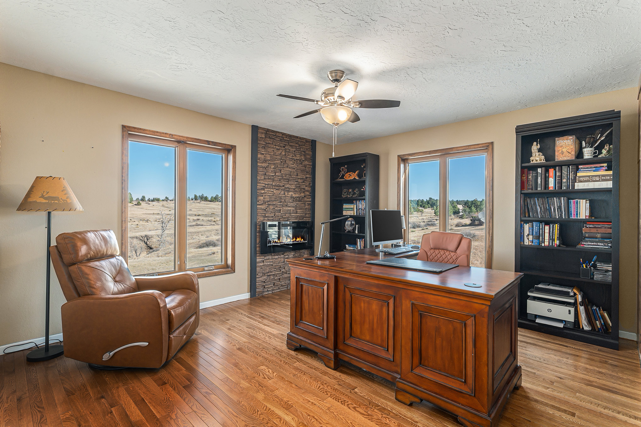 Welcome to your modern Colorado dream retreat with stunning Mountain Views! This fully remodeled ranch home perfectly balances mountain-inspired architecture with refined, contemporary living. Nestled on over 5 private acres in the coveted Butterfield neighborhood, this home offers the serenity of country living with the convenience of being just minutes from shopping, dining, and top-rated schools in Parker. A long paved drive lined with mature pines and a signature elk statue sets the tone as you approach this impressive estate. Step through the knotty alder wood front door to discover warm wood beams, vaulted ceilings, and stone accent walls that create a timeless mountain-modern feel. The completely remodeled kitchen is a showpiece with quartz countertops, a Samsung Bespoke refrigerator, and KitchenAid appliances, including a double oven. A coffee bar and two expansive islands for dining and entertaining complete the space, all framed by a large picture window showcasing mountain views. The living room features an electric fireplace installed over an original wood-burning fireplace, giving buyers the option to restore the classic wood-burning feature if desired, filling the space with warmth and charm. The primary suite opens to a wraparound deck with retractable awning and includes a spa-style bath with clawfoot tub, double-head shower, and heated floors. The walkout basement is an entertainer’s dream with a wet bar, beverage fridge, wood-burning fireplace, and custom wood paneling throughout. Additional upgrades include reverse osmosis filtration, sprinkler system, modern railings, and new composite decking, blending beauty with practicality. With over $100K in thoughtful improvements, this property embodies craftsmanship, comfort, and Colorado character. A rare sanctuary where modern elegance meets mountain soul.